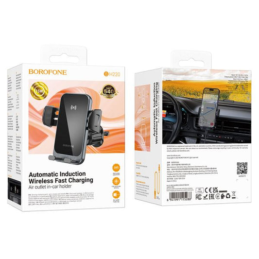 BOROFONE BH220 Leader automatic induction wireless fast charging car holder(air outlet) - black gray