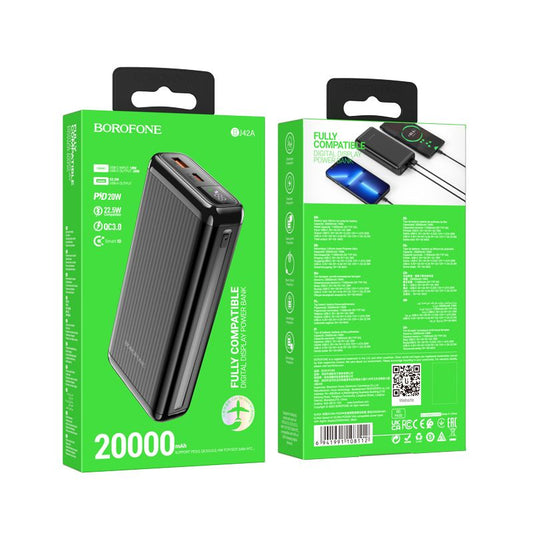 BOROFONE BJ42A Speed of 22.5W+PD20W fully compatible power bank with digital display(20000mAh) - black
