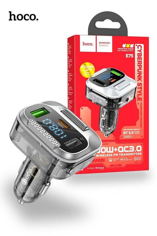 Hoco Car Bluetooth 5.0 30W Wireless FM Transmitter QC3.0 Fast Charger USB-C E75