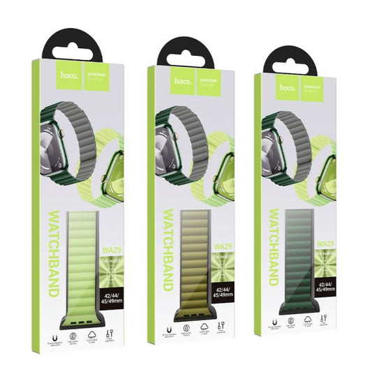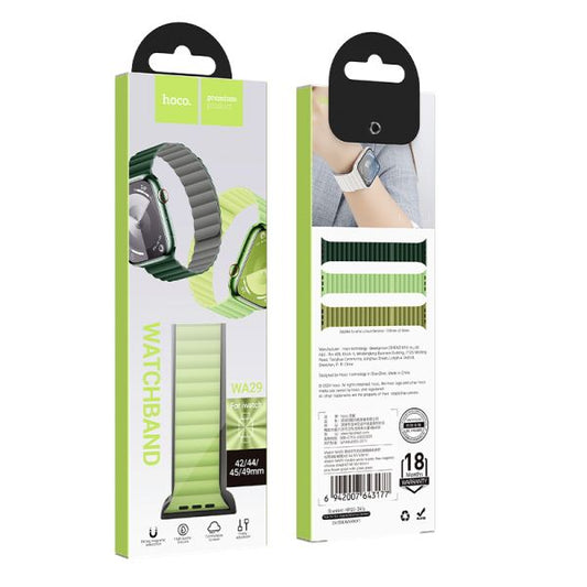 hoco. iWatch WA29 Flexible series buckle-free magnetic silicone strap 42/44/45/49mm - pine flower green with grass green