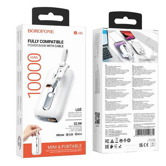 BOROFONE BJ46 Lord 22.5W+PD20W fully compatible power bank with digital display and cable(10000mAh) - white