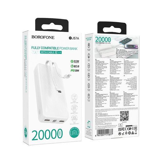 BOROFONE BJ57A Graceful 22.5W+PD20W fully compatible power bank with cable(20000mAh) - white