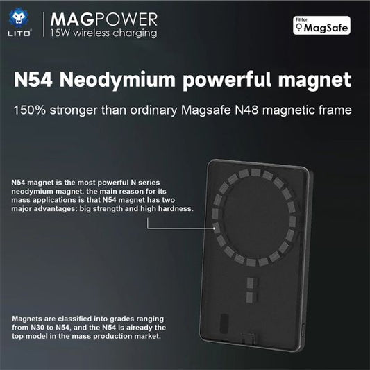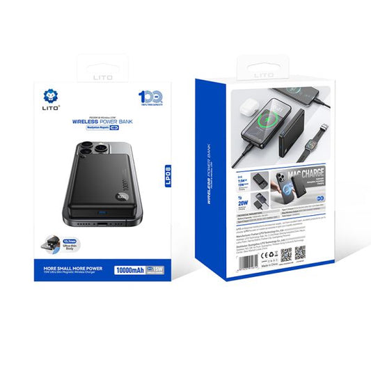 LITO LP08 10000mAh 15W Ultra Thin 5in1 Mag Power Bank (MagSafe Compatible) - Black