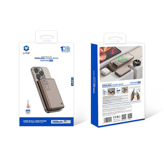 LITO LP01 10000mAh Ultra Thin Aluminum alloy material Mag Power Bank (MagSafe Compatible) - Bronze