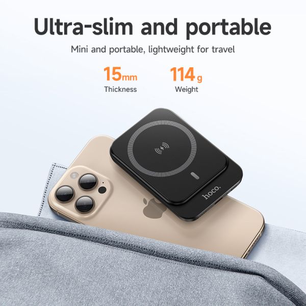 Keep your devices powered anytime with the hoco. DB94 PD20W Mag power bank. Its 5000mAh capacity offers reliable backup, while magnetic compatibility ensures a secure and convenient attachment to your phone. The sleek black design combines style and function, perfect for on-the-go charging with fast 20W PD output. Stay connected without interruption wherever you are.