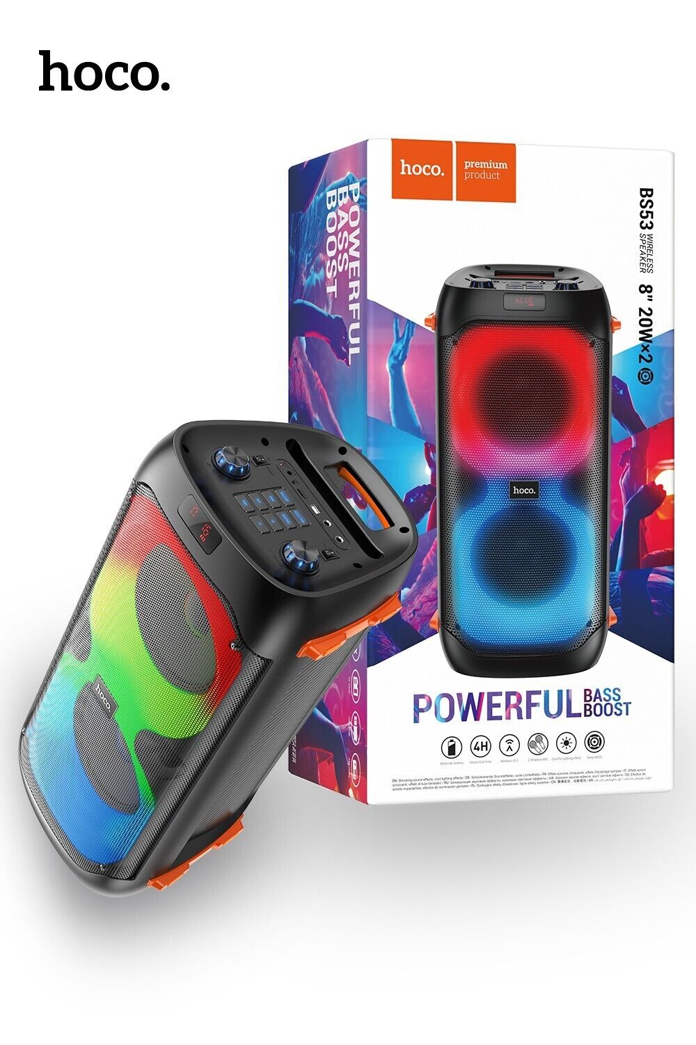 Hoco Wireless Loud Bluetooth Karaoke Stereo Speaker 8" 20Wx2 w/ 2 Microphones - Black