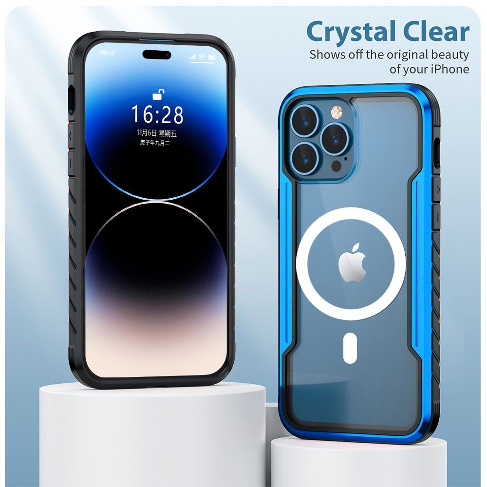 The BLACKTECH Defense Shield Case in Blue combines premium aluminum alloy construction with MagSafe compatibility, offering strong protection and a sleek design for your iPhone 16e.