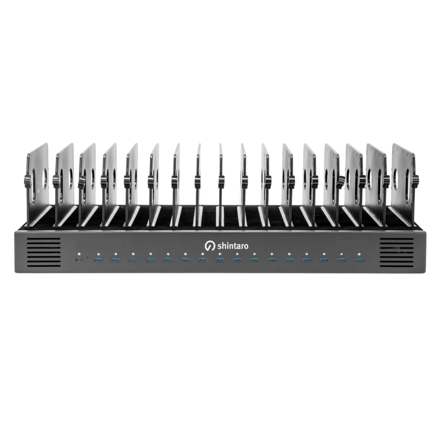 Shintaro 16-Port USB-C PD3.0 1000W GaN Charging Dock for Smartphone, Tablet, & Notebook Devices & Smart Power Management via InnovateCharger App.