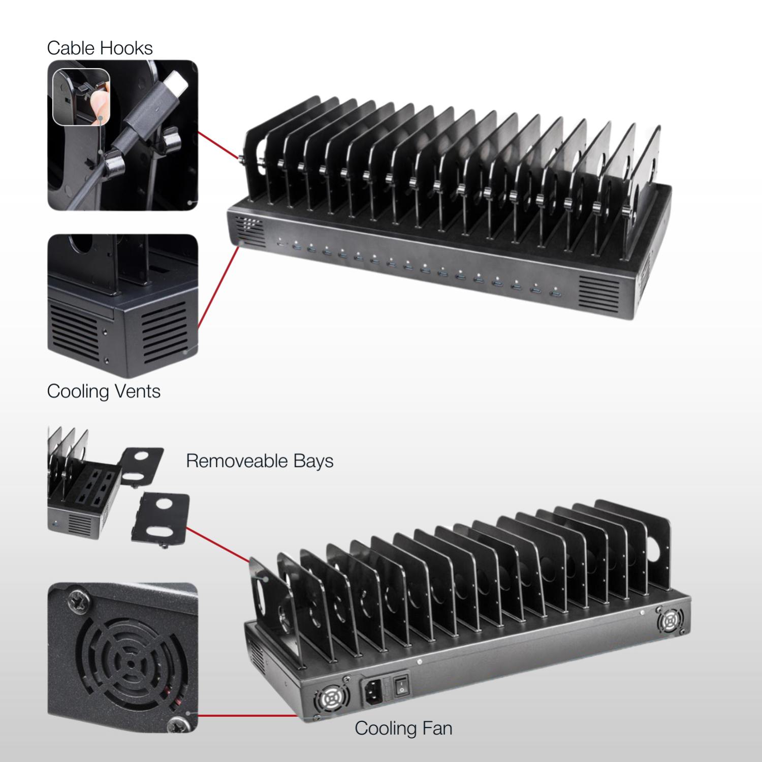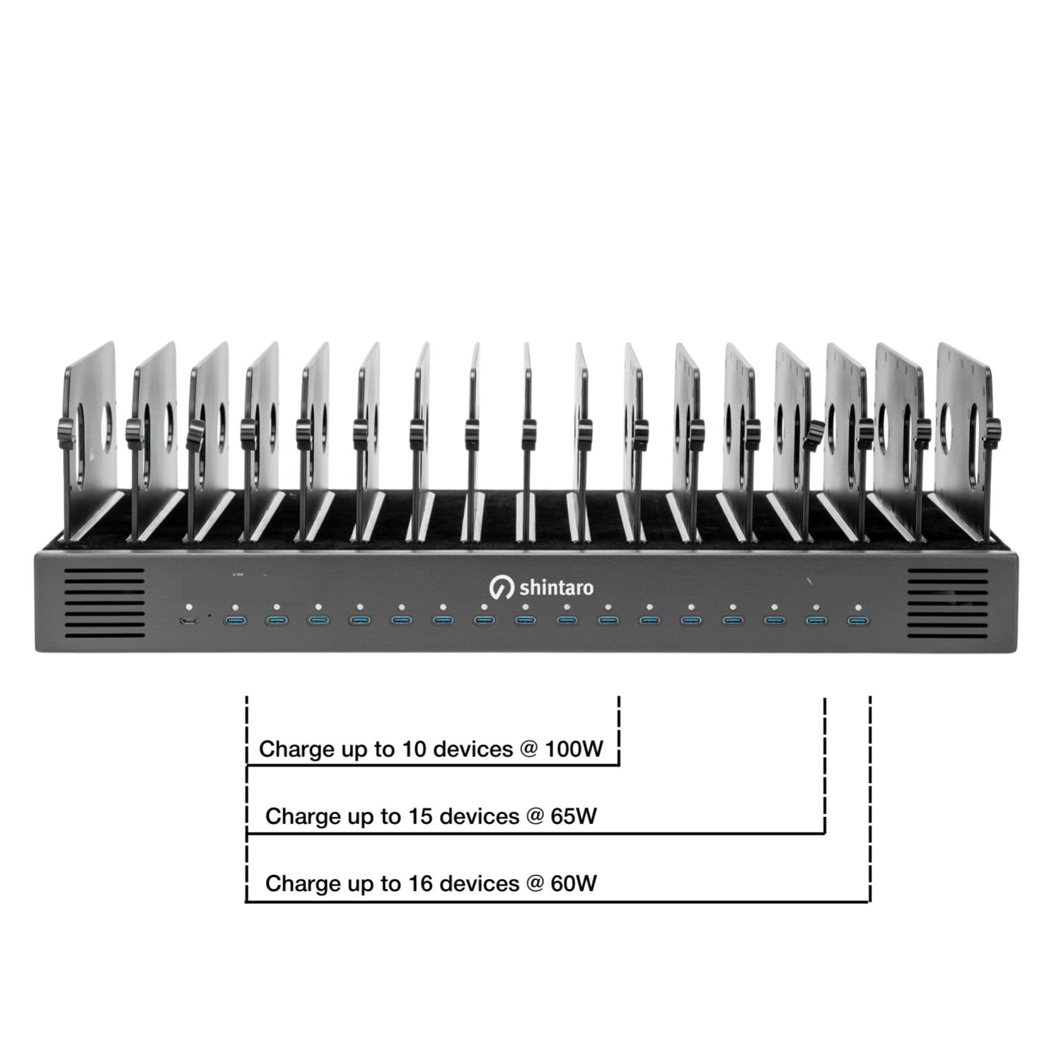 - Maximise productivity with a powerful 1000W charging station that can simultaneously charge up to 10 Macbooks at 100W, 16 Notebooks at 60W or a combination of smartphones, tablets, and USB-C devices.